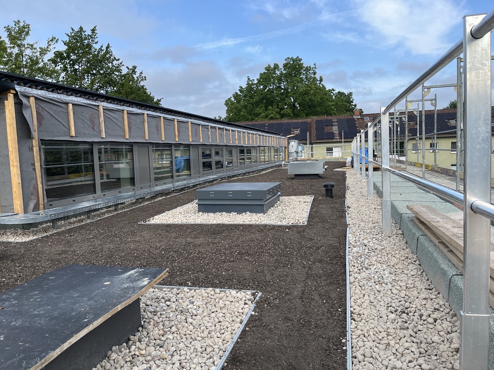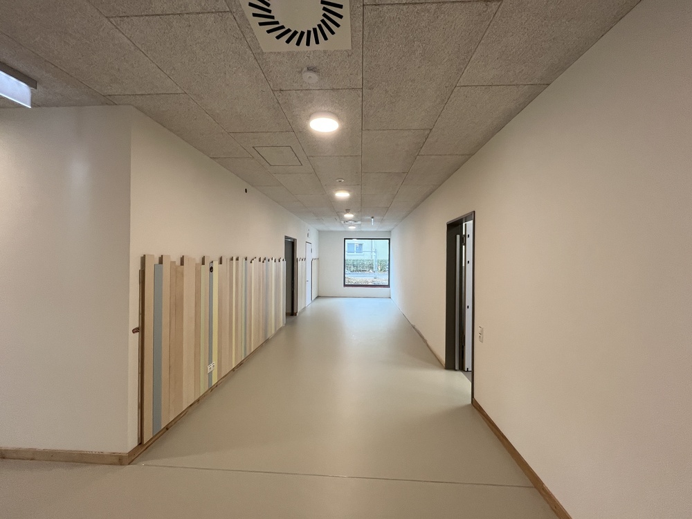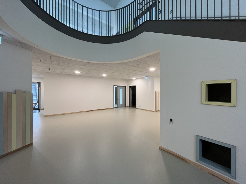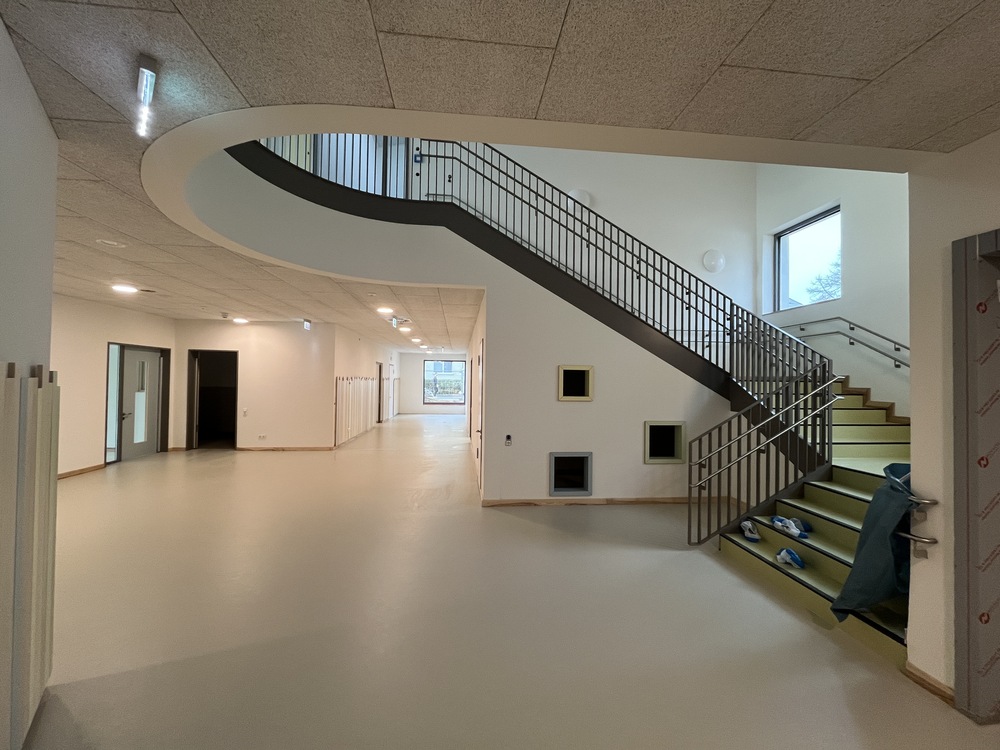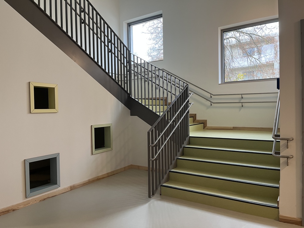 Durch die Anbindung und Integration einer im Gebäudebestand befindlichen vierten Kindergartengruppe steht nun eine 4-Gruppen-Kita zur Verfügung.