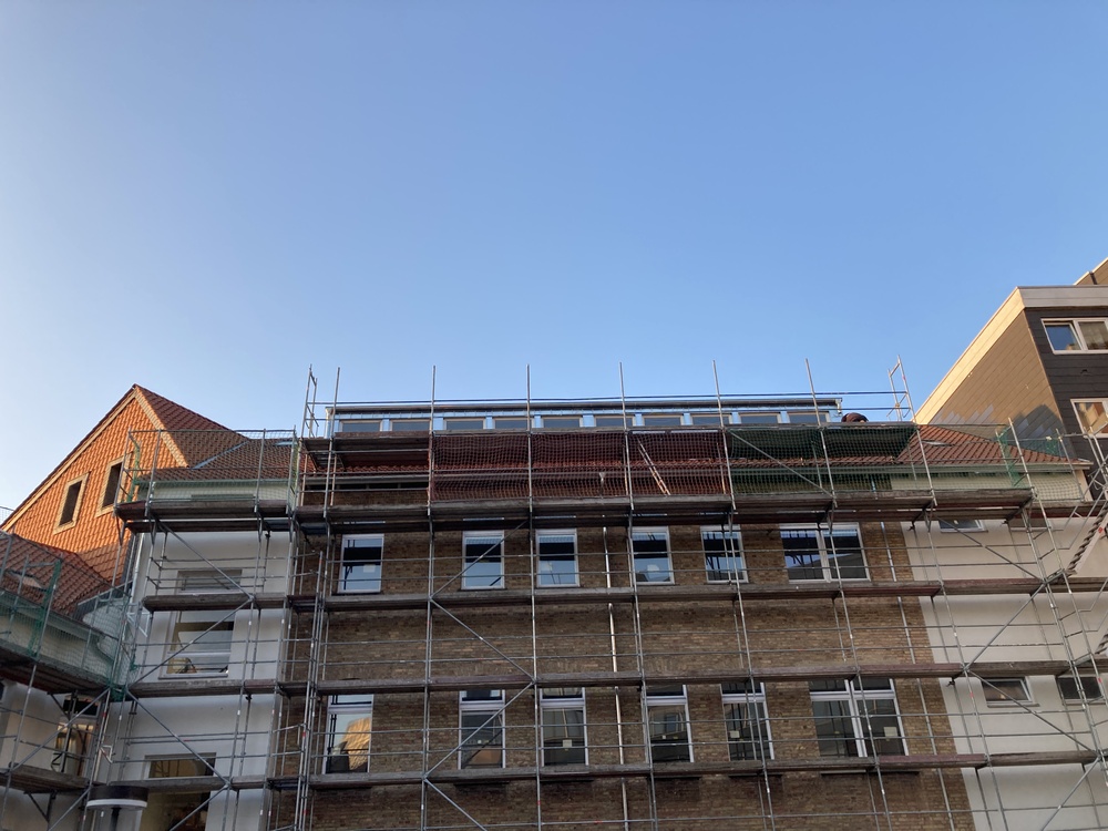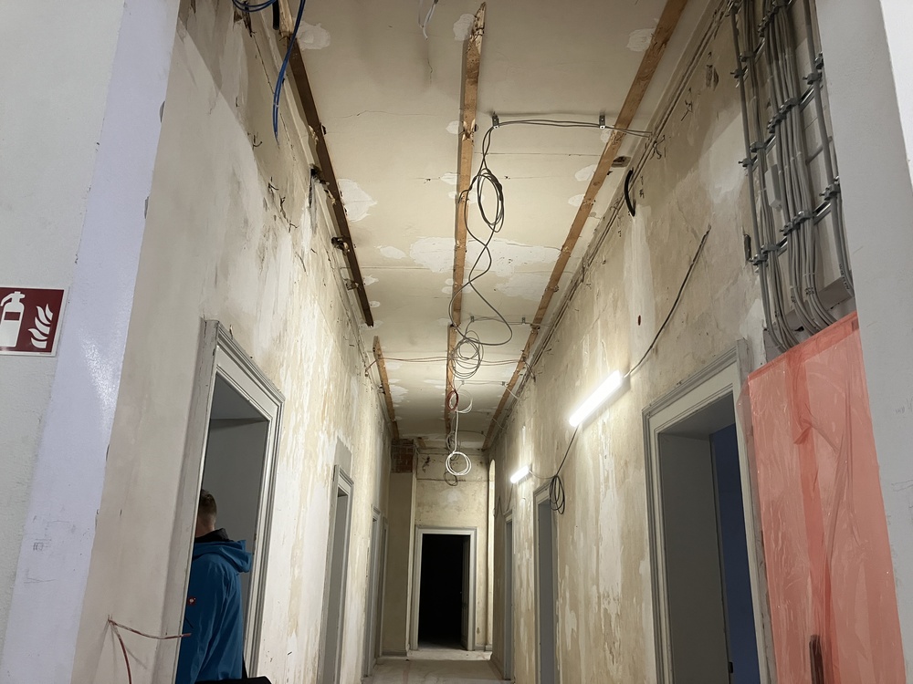 Das massive dreigeschossige Gebäude wurde einschließlich Untergeschoss und Dachgeschoss saniert. Neben einer brandschutztechnischen Ertüchtigung wurden sämtliche Wände und Türen überarbeitet und das Dach erneuert.