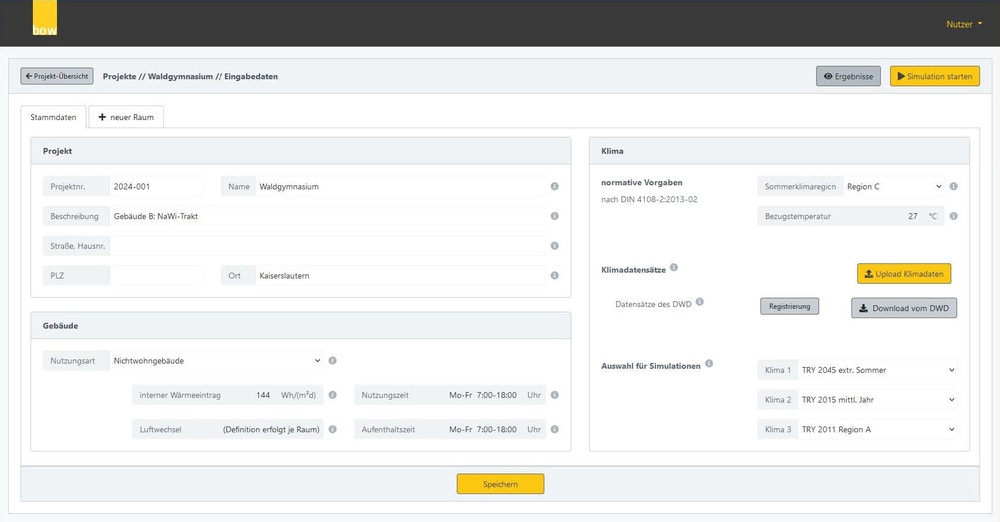 Die Software bildet ein neues, durch künstliche Intelligenz (KI) gestütztes Bemessungsverfahren zur Planung des sommerlichen Wärmschutzes von Gebäuden ab, das u. a. die genaue Gebäudelage und das zugehörige Mikroklima sowie die erwarteten Folgen des Klimawandels berücksichtigt.